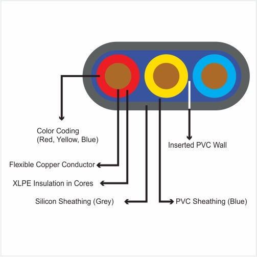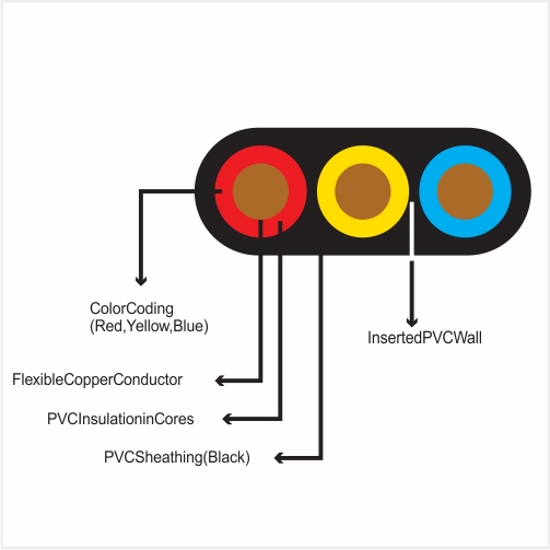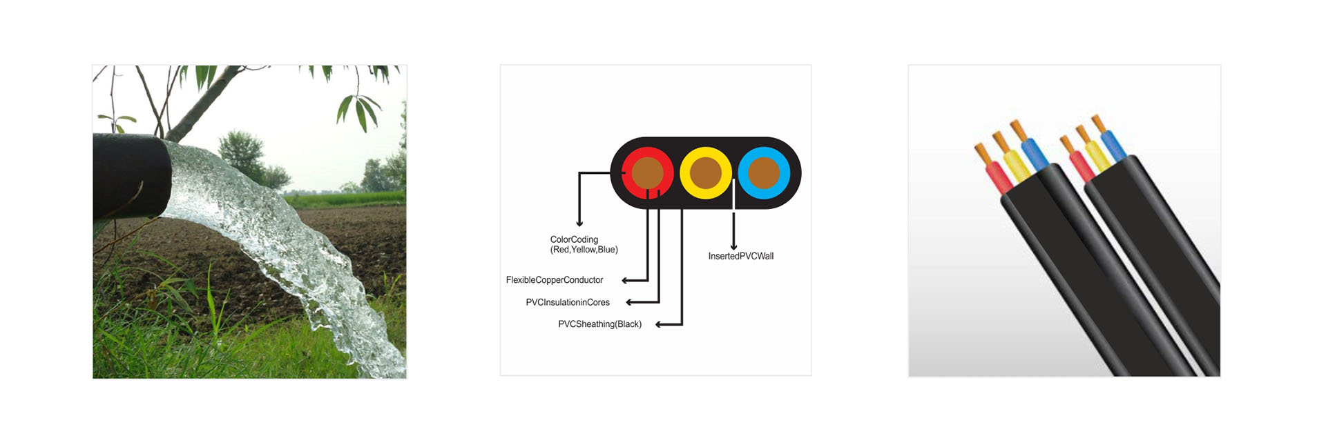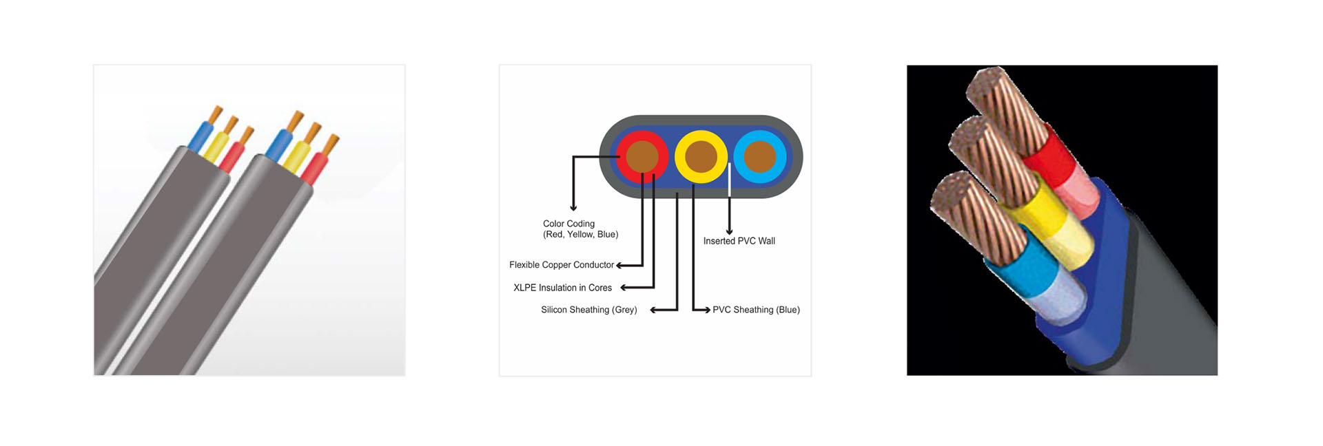 The PVC insulated and sheathed 3 core flat cables are mainly used in pump connections. They are also used in many industrial applications. The sheath is specially made out to resist tough and difficult outdoor conditions & excellent resistant to water.